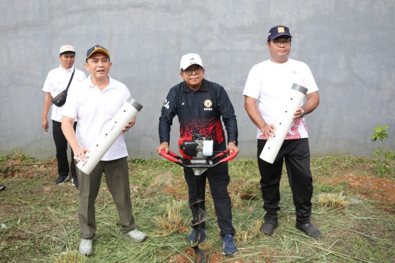 Dalam upaya pencegahan bencana banjir, tidak jauh dari lokasi aliran sungai, turut dilakukan pembuatan lubang resapan biopori diaera pemukiman warga.