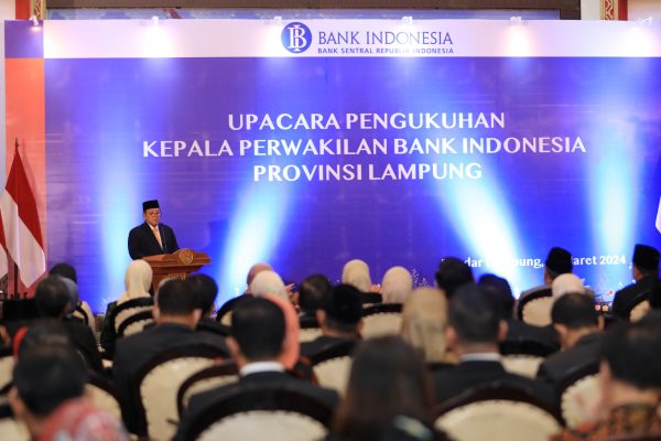 Bandarlampung,Pdnewss.com – Gubernur Lampung Arinal Djunaidi menghadiri Upacara Pengukuhan Junanto Herdiawan sebagai Kepala Perwakilan Bank Indonesia (BI) Provinsi Lampung oleh Deputi Gubernur Bank Indonesia Doni Primanto Joewono, di Kantor Perwakilan BI Lampung, Jumat, 22 Maret 2024.