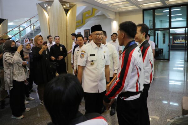 Bandar Lampung, Pdnewss.com — Gubernur Lampung Rahmat Mirzani Djausal menyerahkan bonus kepada Atlet Berprestasi pada ajang Pekan Paralimpiade Nasional (Peparnas) XVII tahun 2024, di Lobby Kantor Gubernur Lampung, Rabu (9/4/2025). Penyerahan bonus tersebut sebagai bentuk apresiasi kepada atlet disabilitas yang mengukir prestasi dalam Peparnas yang berlangsung di Solo, Jawa Tengah 2024 lalu.
