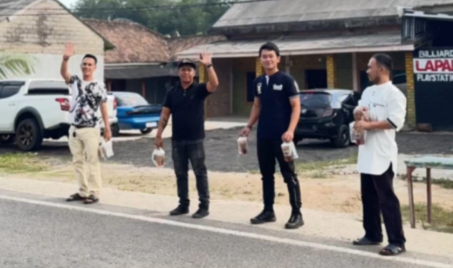 Pdnewss.com (TULANG BAWANG) – Management Lapan8Lapan Billiard Unit 2, Tulang bawang membagikan takjil gratis berbuka puasa yang digelar di jalan lintas Tugu Kuning, Kampung Dwi Warga Tunggal Jaya, Kecamatan Banjar Agung, Rabu 26 Maret 2025.