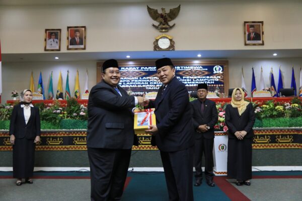 Prestasi ini disampaikan saat Rapat Paripurna Istimewa DPRD Provinsi Lampung dalam rangka penyerahan Laporan Hasil Pemeriksaan (LHP) BPK Perwakilan Provinsi Lampung atas Laporan Keuangan Pemerintah Daerah (LKPD) Provinsi Lampung Tahun 2023 di Ruang Sidang DPRD Provinsi Lampung, Rabu (8/5/2024).
