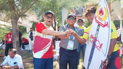 Dia meminta doa dan dukungan dari seluruh masyarakat agar prestasi yang gemilang diraih atlet Lampung pada cabang olahraga selancar ombak.