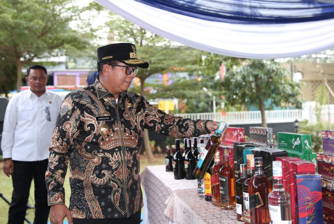 Bandar Lampung, Pdnewss.com — Pj. Gubernur Lampung Samsudin menghadiri pemusnahan 28,5 juta batang rokok ilegal dan 2 ribu liter minuman mengandung etil alkohol (MMEA/miras) ilegal, di Kantor Wilayah (Kanwil) Direktorat Jenderal Bea dan Cukai (DJBC) Sumatera Bagian Barat (Sumbagbar) Bandar Lampung, Kamis (12/9/2024).
