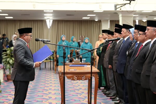 Bandar Lampung, Pdnewss.com — Pj. Gubernur Lampung Samsudin melantik dan mengambil sumpah / janji jabatan 12 Pejabat Pimpinan Tinggi Pratama hasil uji kompetensi terhadap Pejabat Pimpinan Tinggi Pratama di lingkungan Pemerintah Provinsi Lampung, yang berlangsung di Balai Keratun Lt.III, Komplek Kantor Gubernur Lampung, Bandar Lampung, Jum’at (7/2/2025).