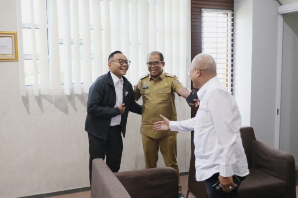 Pj. Gubernur Samsudin diterima Dirut Bank Lampung Presley Hutabarat serta jajaran pejabat Bank Lampung.
