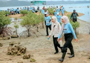 Sebanyak 25.000 bibit mangrove ditanam pada kegiatan tersebut sebagai upaya memperkuat sabuk hijau pesisir dan mengurangi risiko abrasi maupun dampak perubahan iklim.